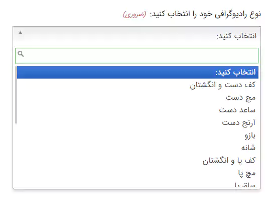 برای ثبت نسخه رادیو گرافی کافی است عضو بدن که می خواهید مورد رادیوگرافی قرار گیرد را انتخاب کنید