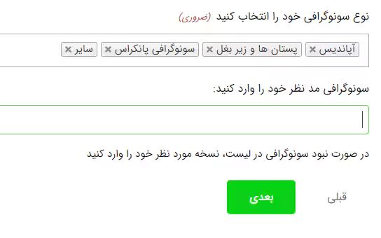 جهت ثبت نسخه سونوگرافی می توانید چند انتخاب همزمان داشته باشید.